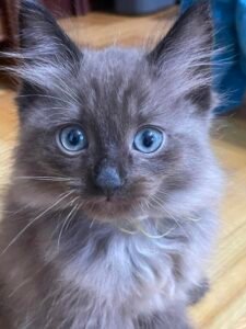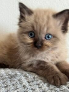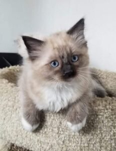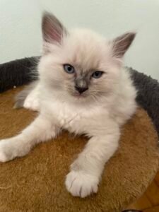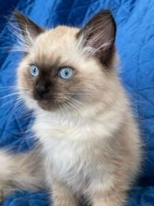 Koty rasy Ragdoll – umaszczenia colourpoint/point, mitted oraz bicolour. Posiadają oczy w kolorze niebieskim.